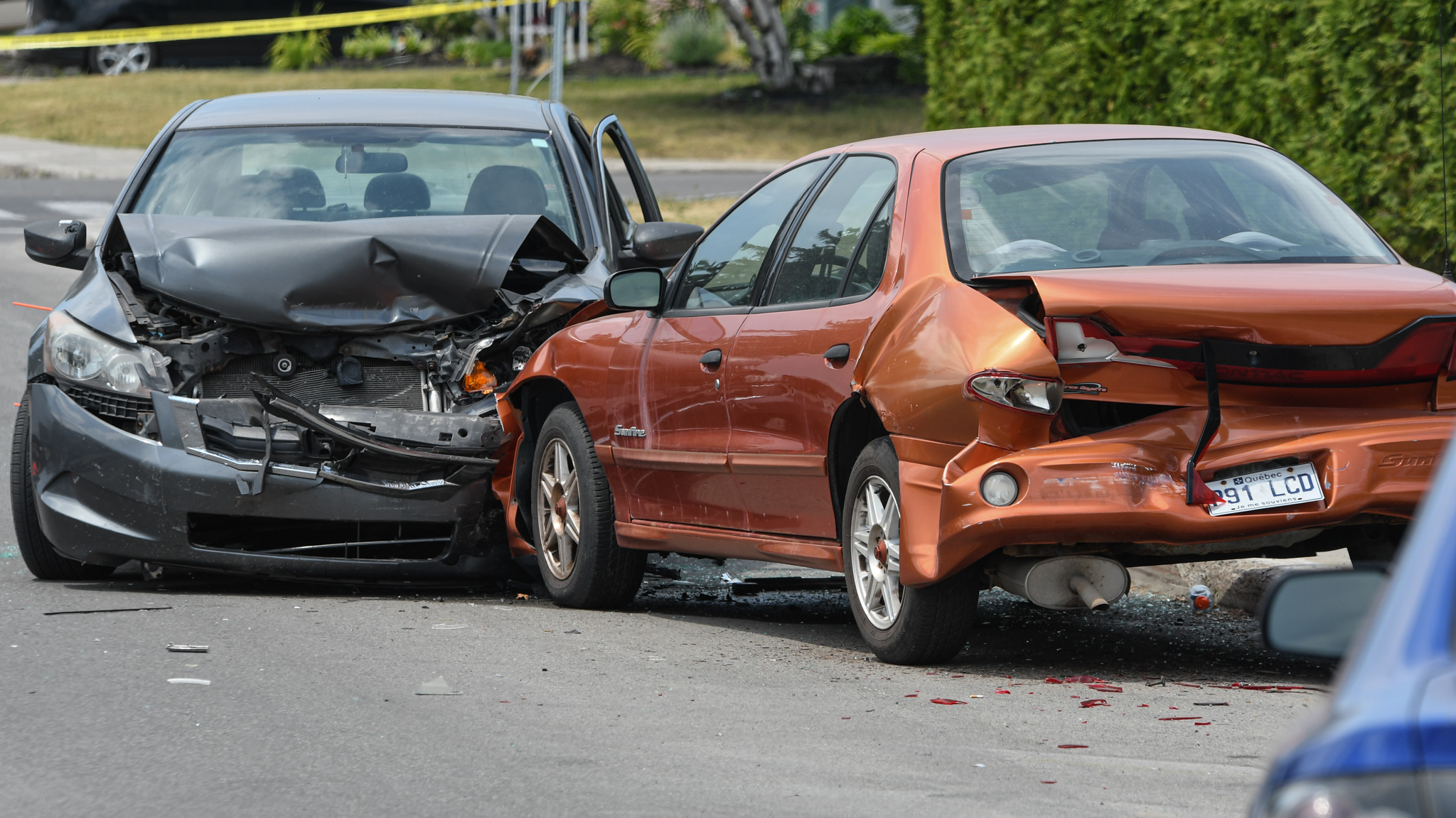 A car crash implicating three cards in Chateauguay Monday night. Thierry Laforce / Roussillon News