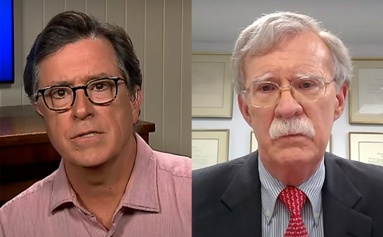 Donald Trump‘s former national security advisor John Bolton made an appearance on the Late Show on Tuesday evening to promote his tell-all memoir The Room Where it Happened, but things took an awkward turn when host Stephen Colbert condemned the “international negotiator” for being “naive” enough to ever work with the U.S. president.