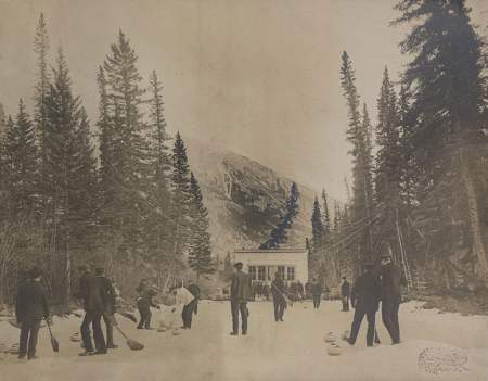 Original description: Curling at Banff. Year: 1906. Byron Harmon