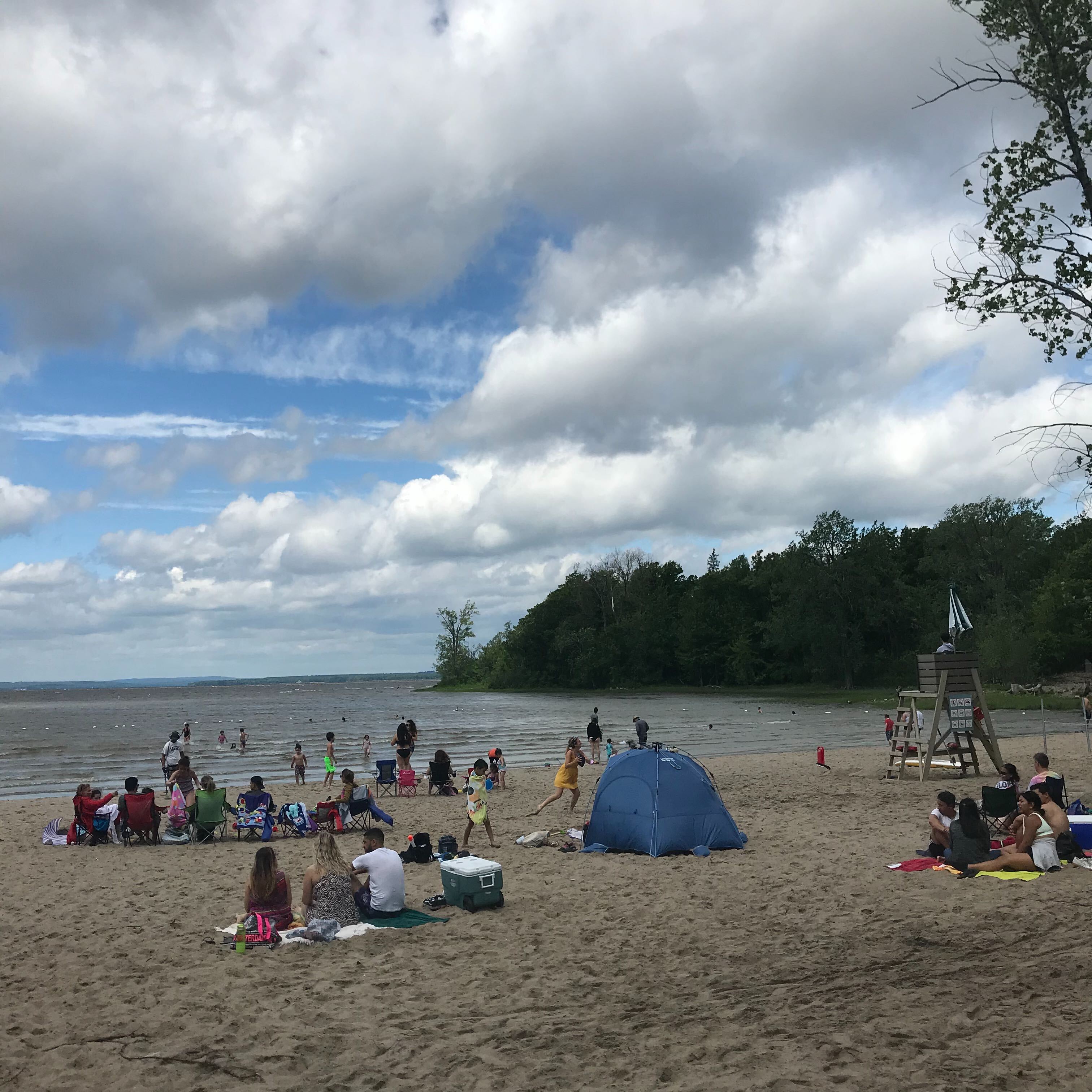 The beach at Cap-Saint-Jacques Nature Park in Montreal’s Pierrefonds-Roxboro borough was teeming with people on Wednesday.