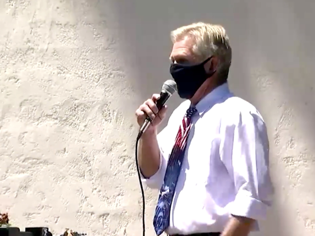 In video footage of Coun. Guy Phillips‘ address at the rally, he can be heard saying “I can’t breathe” before removing his mask. The crowd cheers.