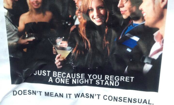 “Just because you regret a one night stand doesn’t mean it wasn’t consensual,” the posters read.