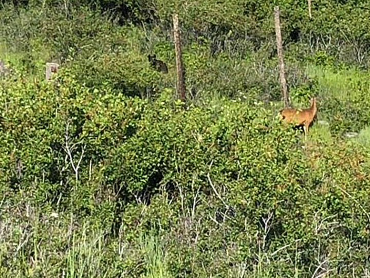Grimeau said the bear and deer went back and forth for more than five minutes, with the bear eventually giving up and staying in a bush.