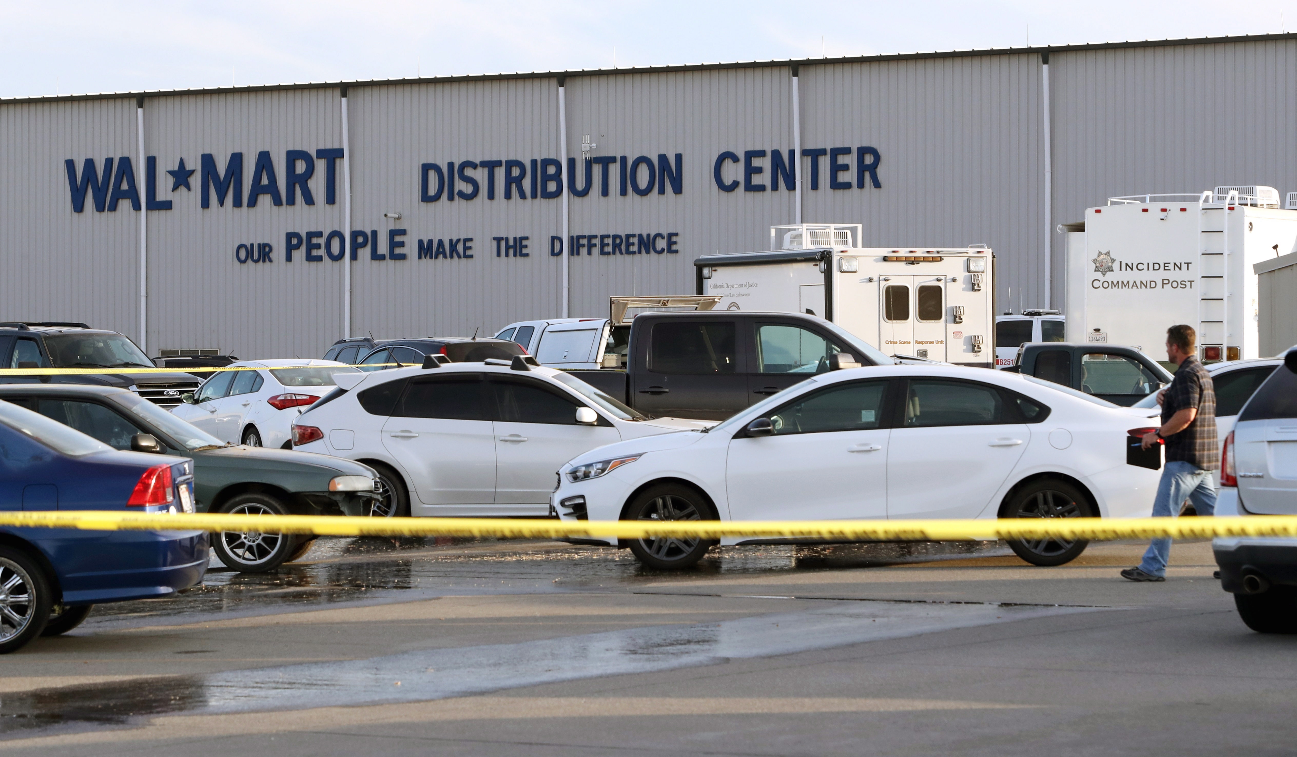 A man who drove into a Walmart distribution centre in Northern California and went on a shooting rampage that left him and another man dead, and four others wounded, was fired from his job at the centre last year, authorities said.