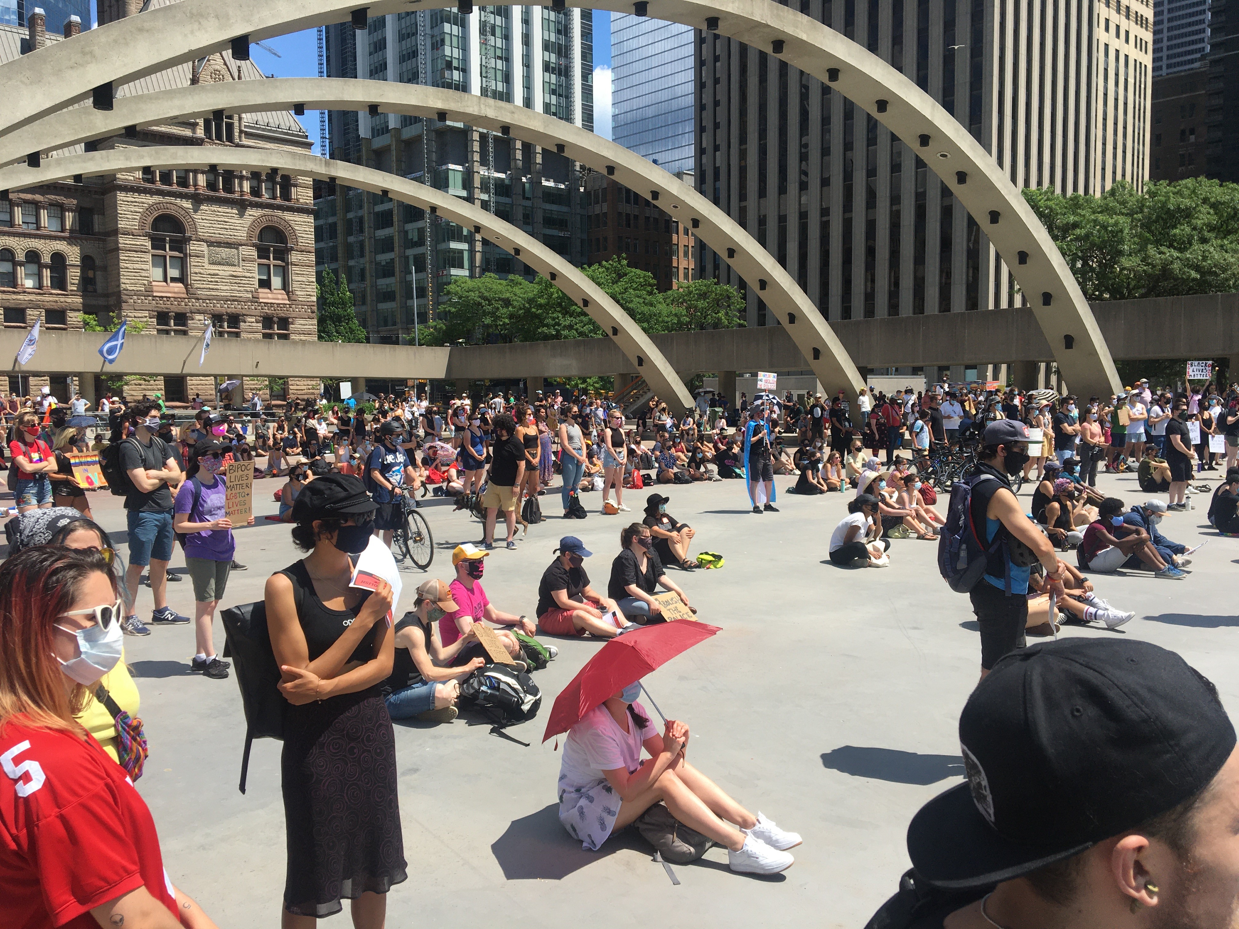 Calls for police reform and changes to the way Pride celebrations are carried out echoed across Toronto’s Nathan Phillips Square on Sunday as hundreds attended a rally and teach-in.
