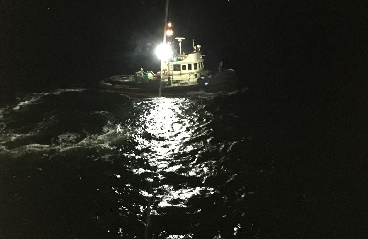 However, the vessel remained stranded at 12:15 a.m. despite two tugs arriving on scene.