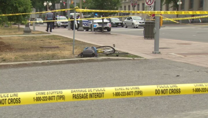 A cyclist is facing life-threatening injuries following a crash involving a “large-sized” vehicle at Wellington Street and Lyon Street North on Thursday afternoon, Ottawa paramedics say.