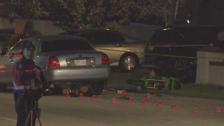 A man in his 30s was killed after he stunted on his motorcycle, hit a parked car and became pinned under it for about 15 minutes on Thursday, the Calgary Police Service said.