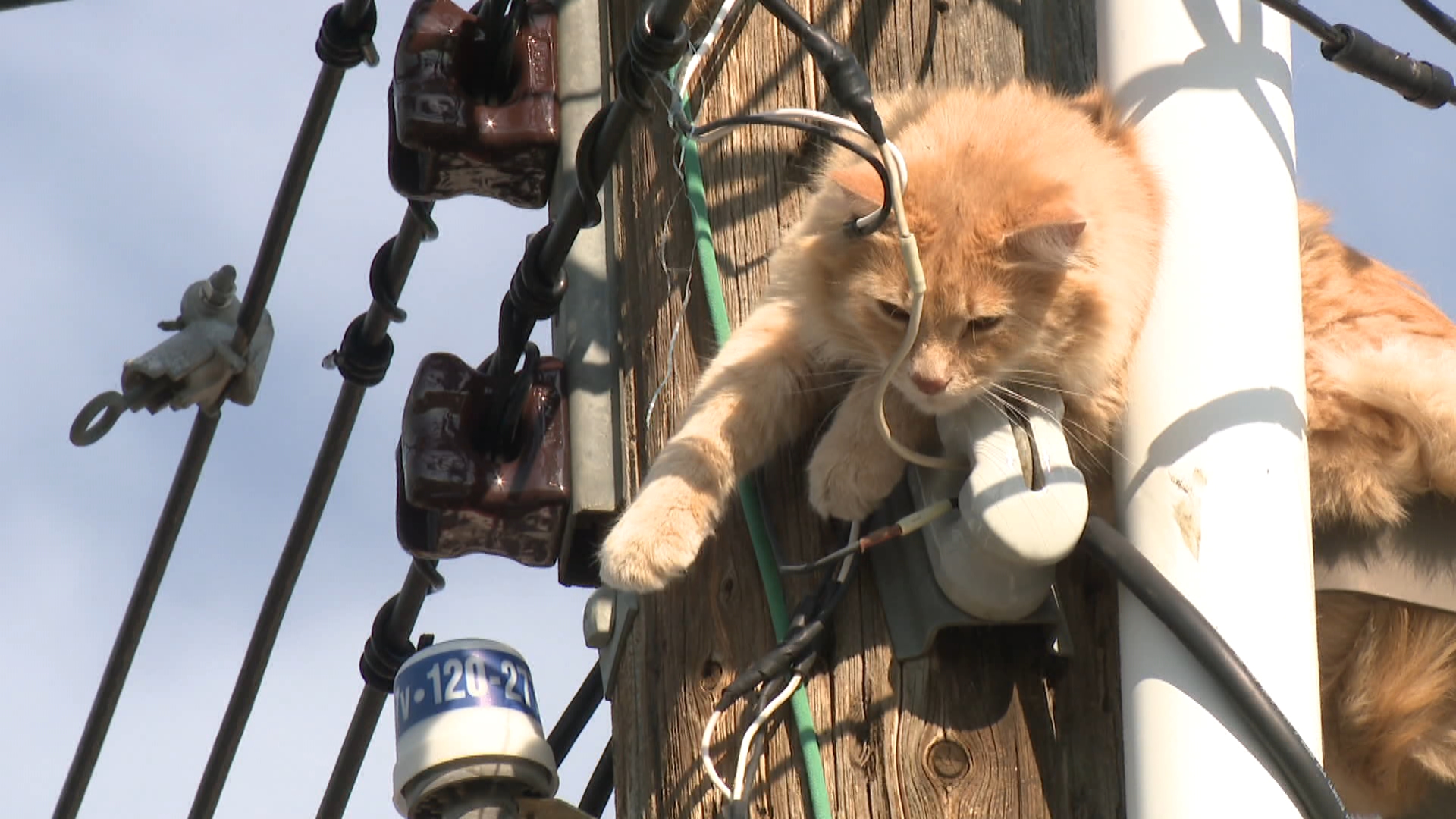 Calgary firefighters were able to help a cat that became stuck at the top of a utility pole in the community of Highland Park on Friday.