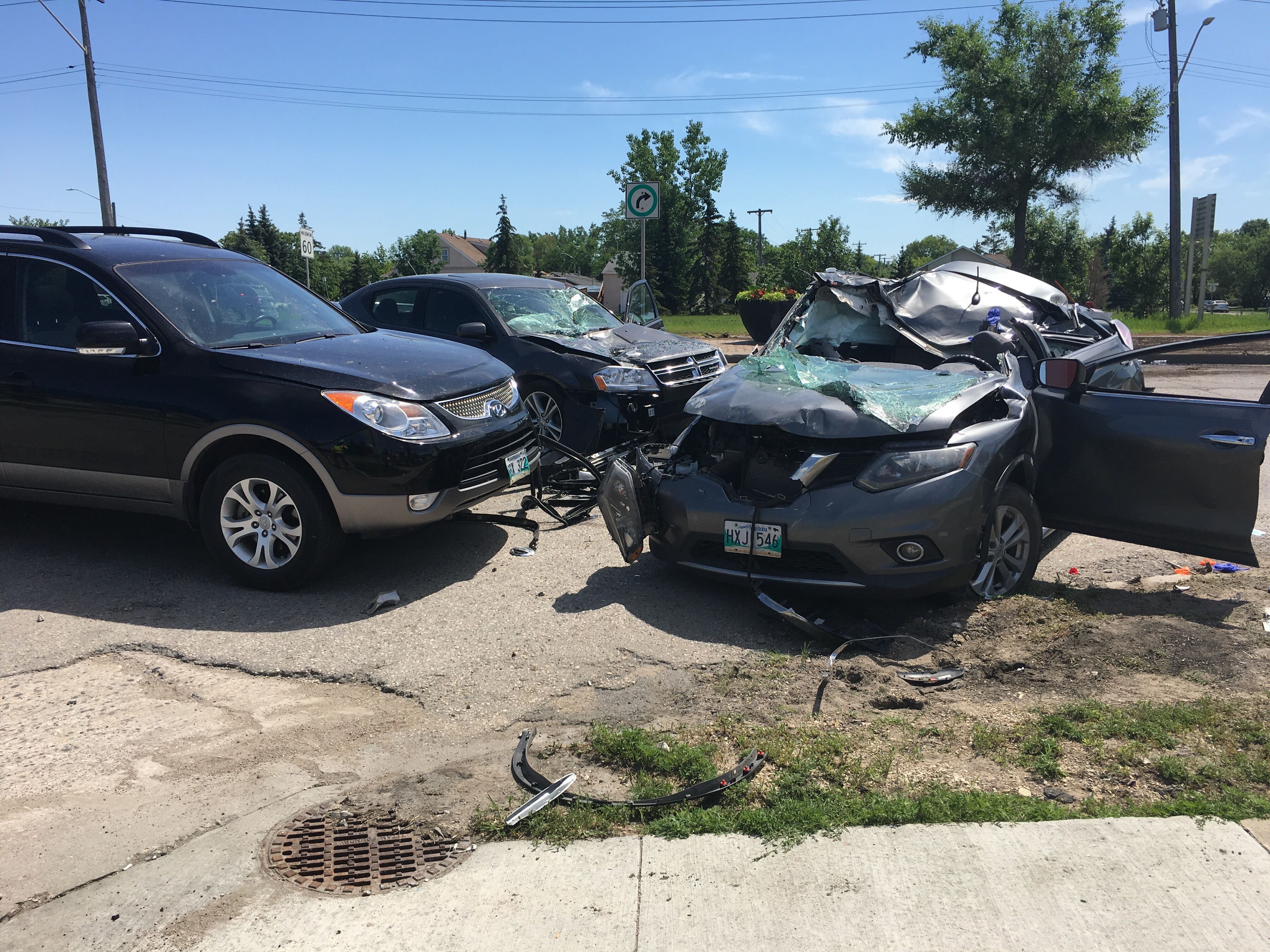 Police were called to the scene just after 1 p.m. at Saint Charles Street and Portage Avenue. The crash appears to involve at least three vehicles.