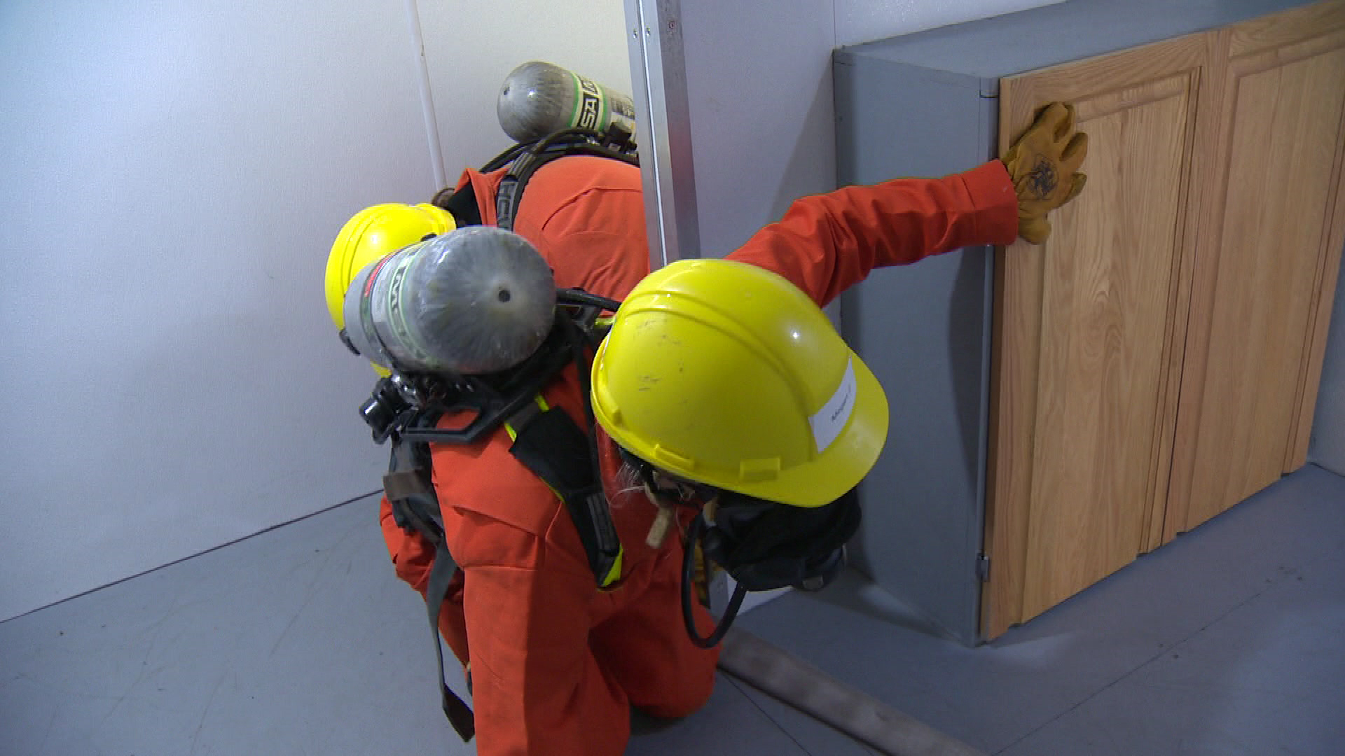 In another exercise, they had to get on their hands and knees and weave their way through a maze, which is meant to mimic the confined spaces that firefighters sometimes face.