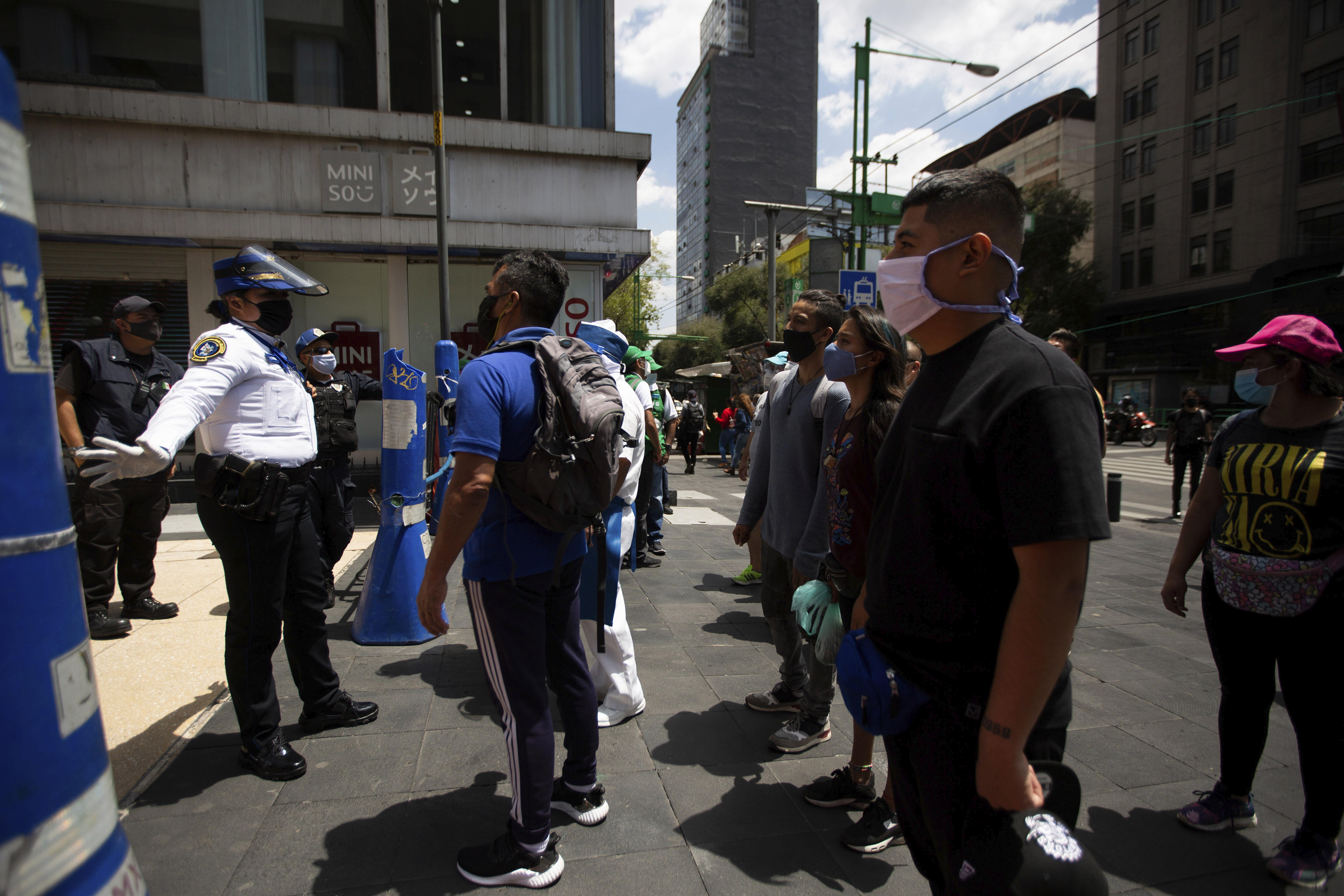 The Mexico City government said Friday it will re-close some of the streets and businesses allowed to open during the week in the capital’s historic colonial-era downtown, after crowding and a lack of sanitary measures were reported at some stores. While most customers and clients wore some form of face mask, many stores didn’t reduce the number of clients allowed in, provide foot-wiping pads or sanitizer gel.