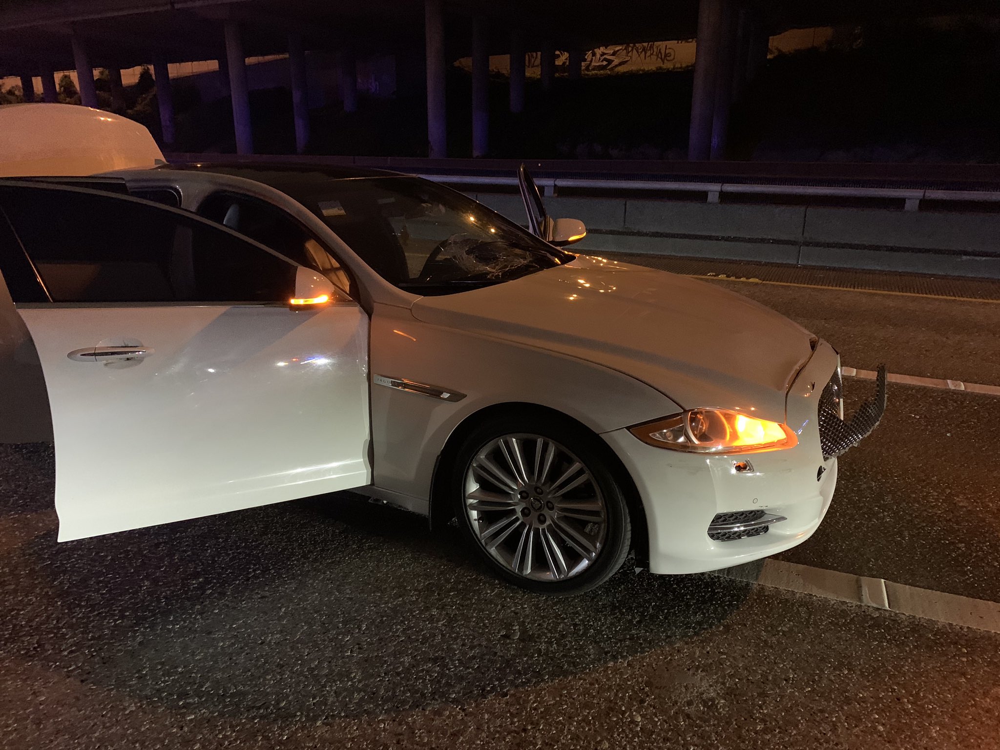 The state patrol tweeted out two pictures of the driver’s car with significant damage to its bumper and windshield.