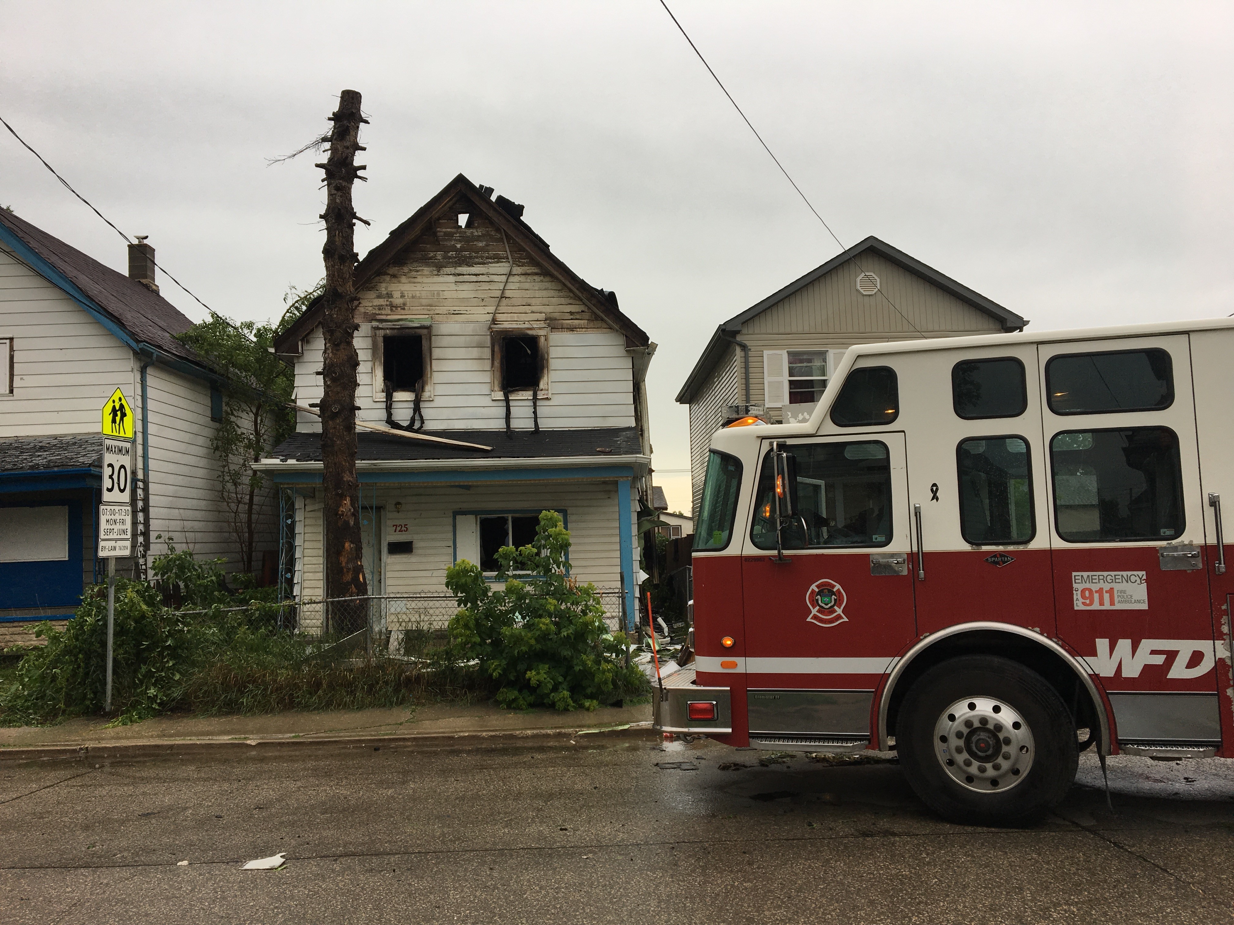 WFPS says an aerial ladder was used to put water on the fire and protect neighbouring homes, one of which was vacant and the other occupied.