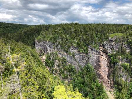 The deck allows for a safe, clear view over the Walton Glen Gorge, a popular scenic and hiking area along the Fundy Trail.