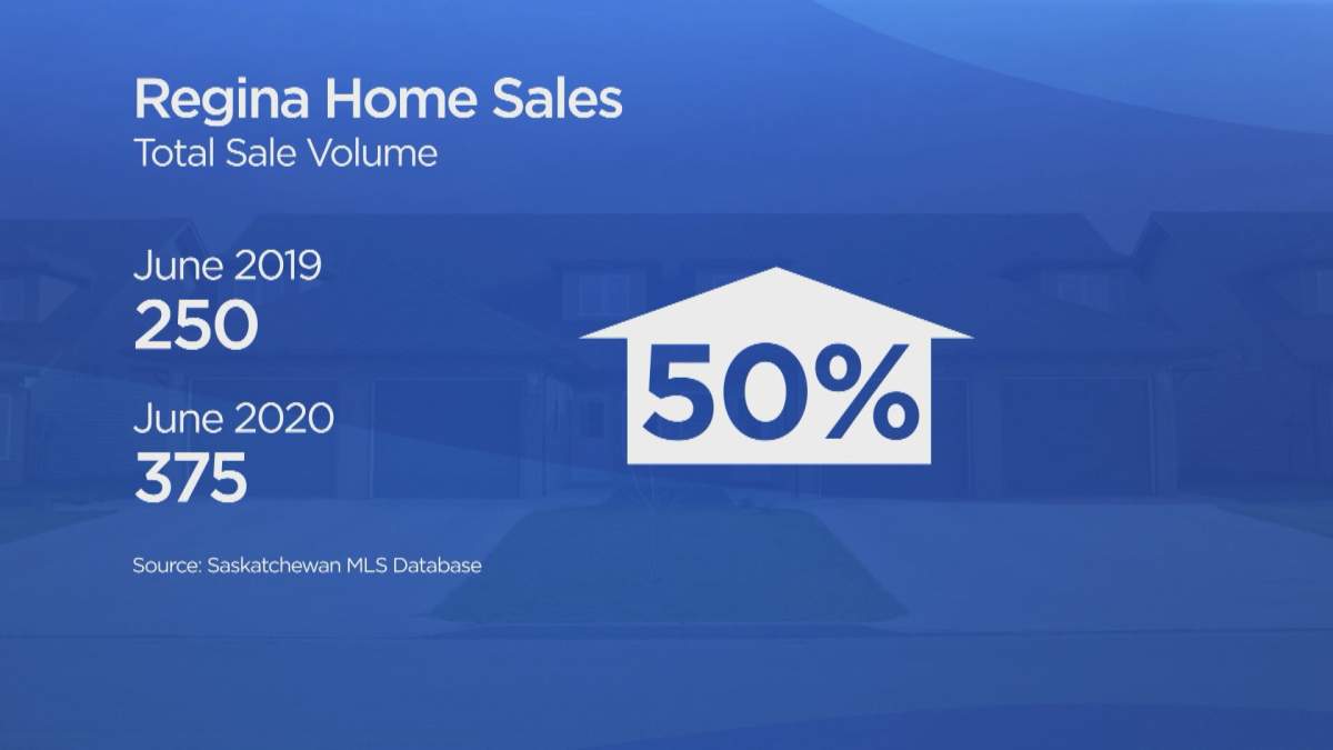 MLS Saskatchewan data shows that in June 375 homes were sold in Regina, a 50 per cent increase over June 2019 when 250 sales were made.