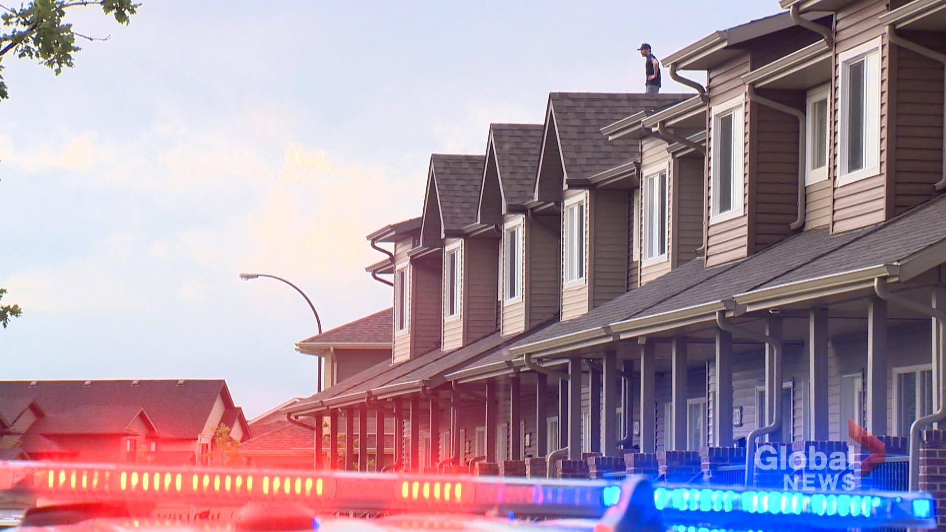 WATCH: On Friday evening, a 34-year-old man ran across two townhouse building rooftops for over three hours before being brought down by the Saskatoon Fire Department – Jul 11, 2020