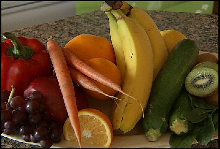 The colour-coded chart helps parents and kids remember to buy and eat the suggested servings of fruits and vegetables every day.
