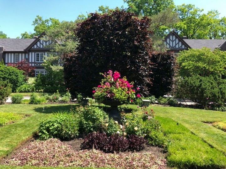 A River’s Beech tree with matching, opposing hedging offers shade and an area for private, seated conversations.