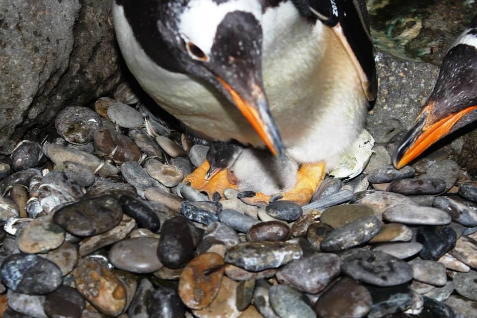The young gentoo penguin emerged from its egg on Sunday July 7th to the delight of proud parents Giselle and Lachlan.