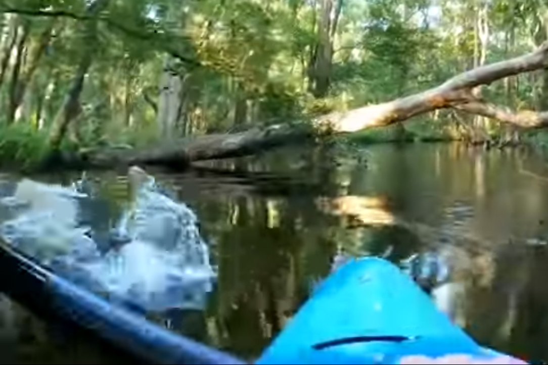 Kayaker Peter Joyce found himself in that heart-stopping predicament last weekend in a close encounter that he not only survived, but also managed to capture on video.