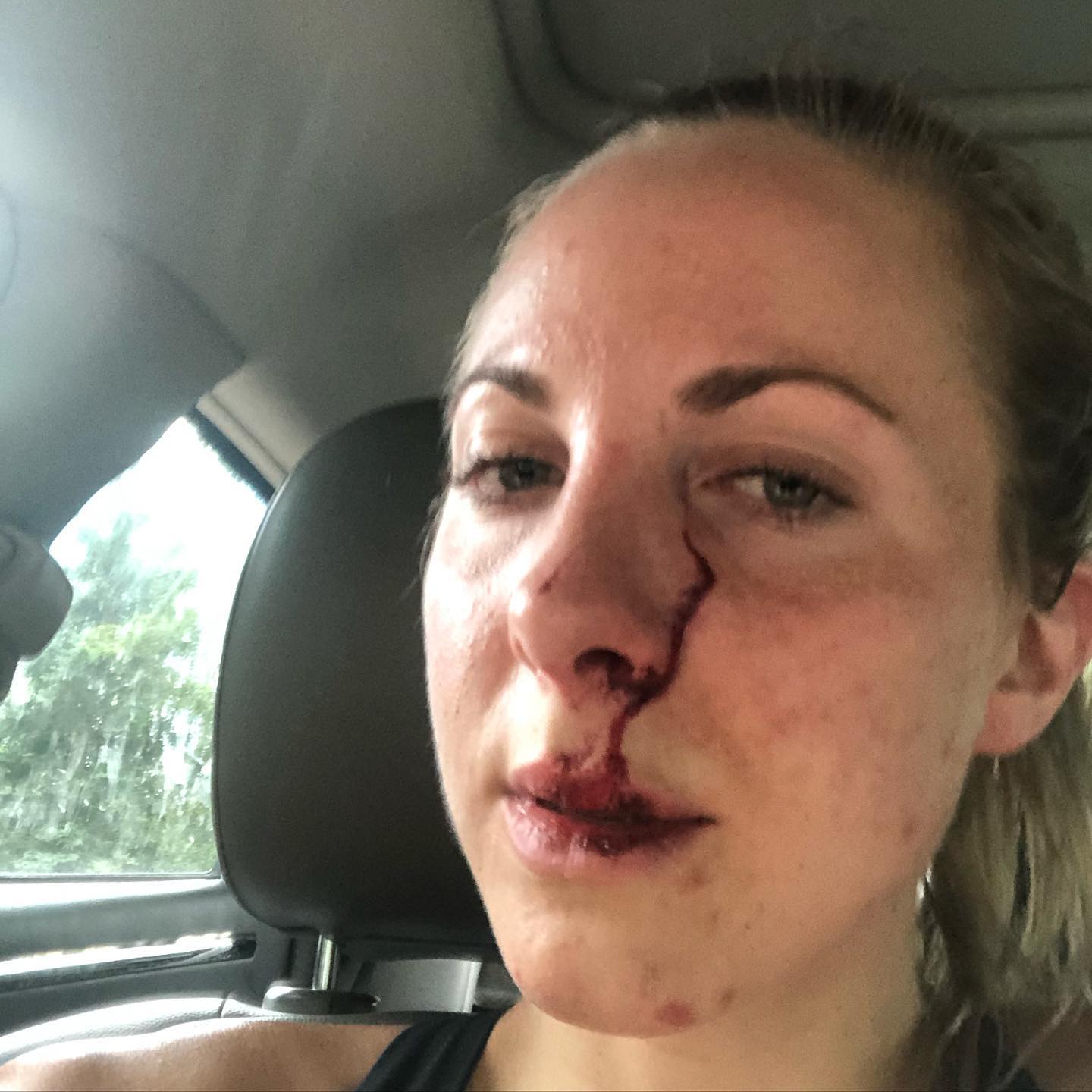 “The big cut that runs down from my eye to the bottom of my nose was just gushing blood,” she said.