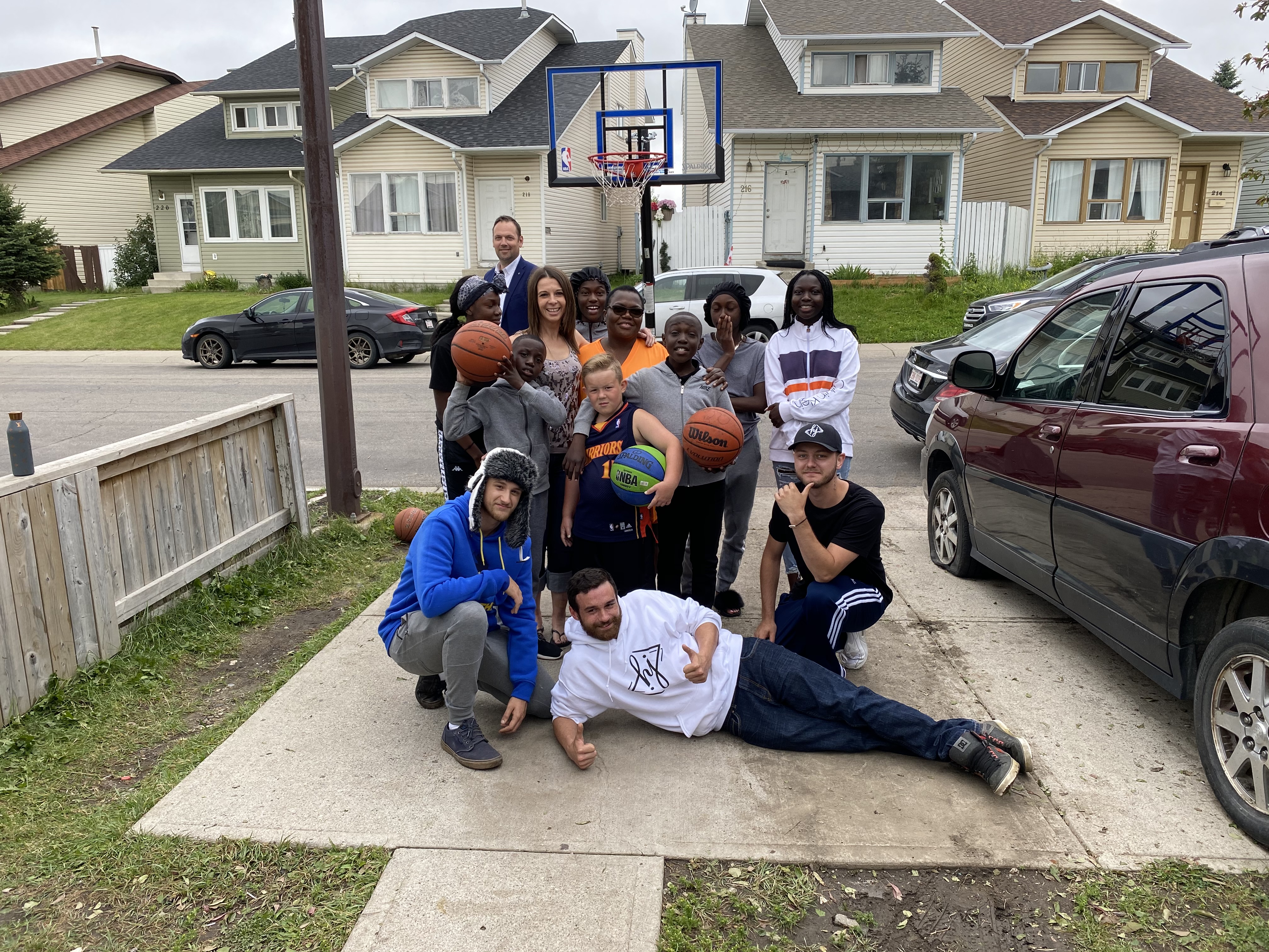 The trio decided December was too far away, however, and decided to put a call out on social media to see if they could wrangle up a basketball net for the kids, who — without one — would often have one of their sisters hold her arms out in a circle to act as a hoop for them.