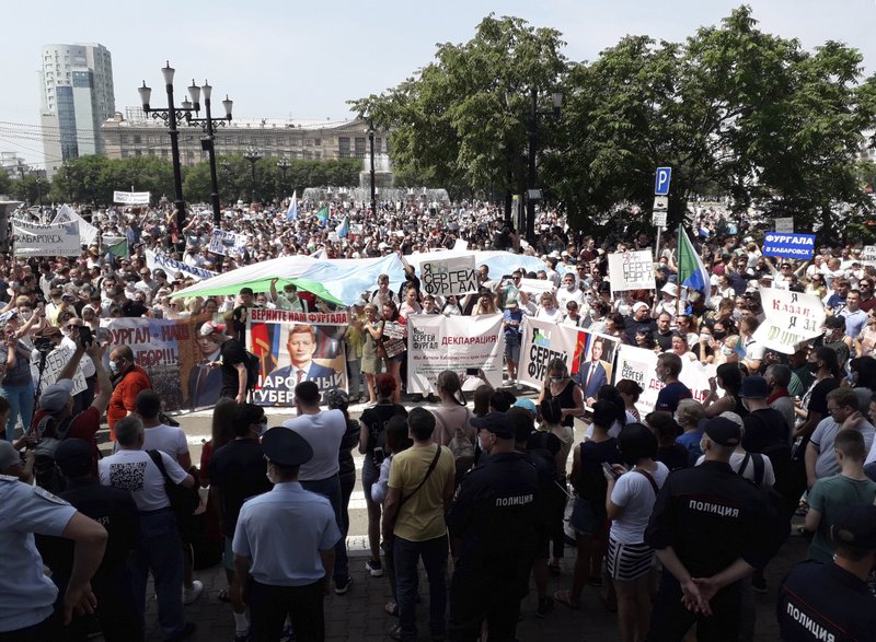 The protests, unauthorized by authorities, are the largest ever to have taken place in Khabarovsk, a city of 590,000. Kremlin spokesman Dmitry Peskov called the situation “not standard” this week. Moscow has not yet appointed an acting governor 11 days after Furgal’s arrest.