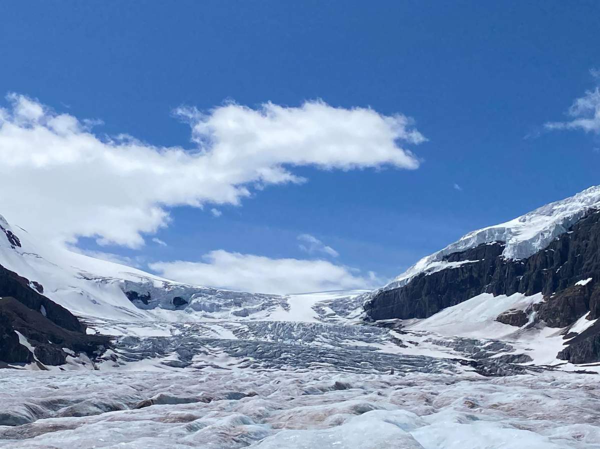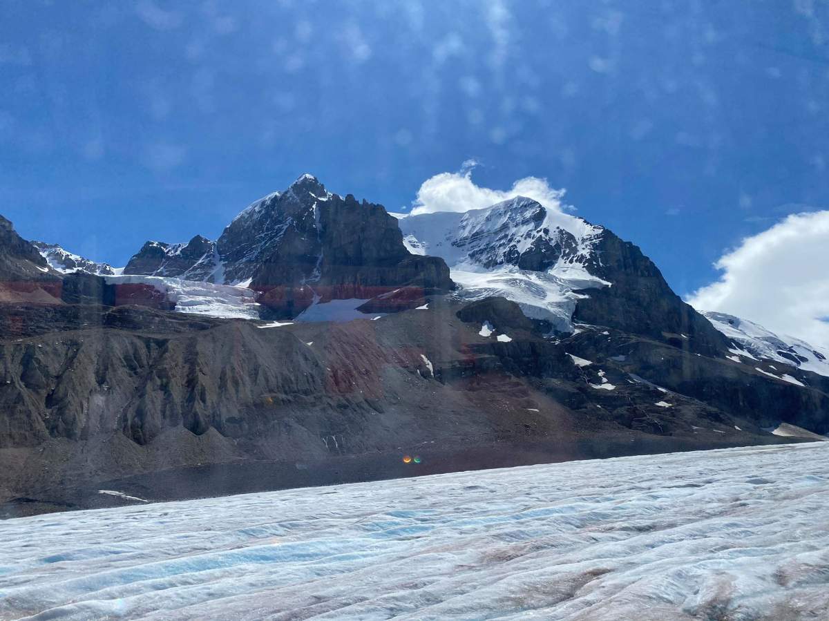 They boarded the snow bus and started the slow steep climb to the glacier.