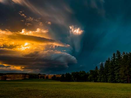 Environment Canada issued a severe thunderstorm warning for Rocky View County near Cochrane at around 10:40 p.m., saying the storm was capable of producing very strong wind gusts, nickel- to ping-pong-ball-sized hail and heavy rain. The storm was located 25 kilometres northwest of Cochrane, moving towards the east at 30 km/h.