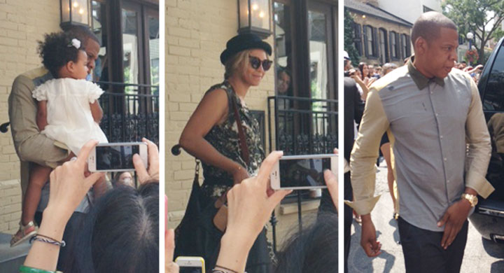 Jay-Z endured the city’s sticky summer heat in a buttoned-up shirt and black pants. He was the dutiful dad, carrying Blue Ivy out of the eatery and securing her in the back seat of a waiting SUV.