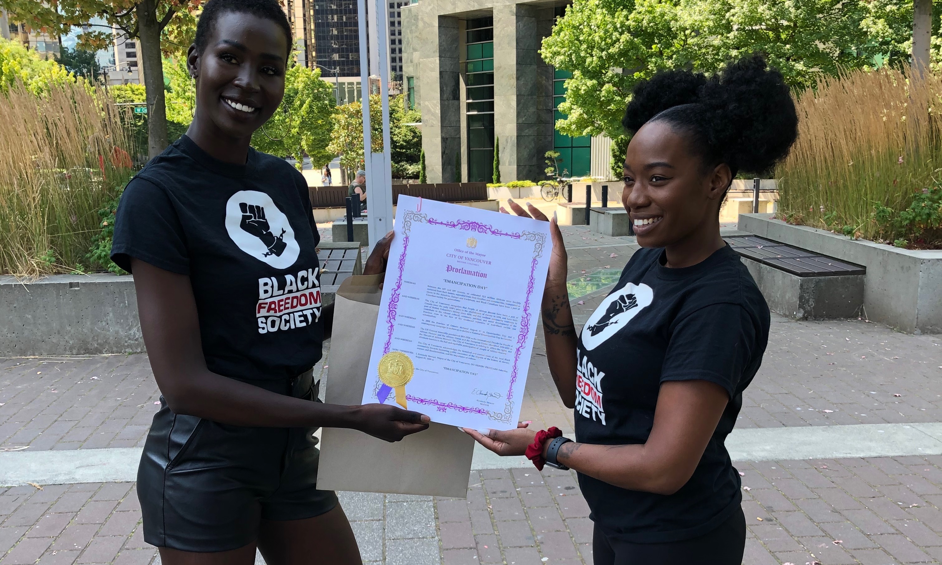Organizers of Saturday’s rally unveiled a proclamation bearing Mayor Kennedy Stewart’s signature declaring Aug. 1 Emancipation Day in the city.