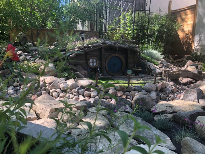 It’s equipped with a bridge, solar water fountain, garden and mailbox.