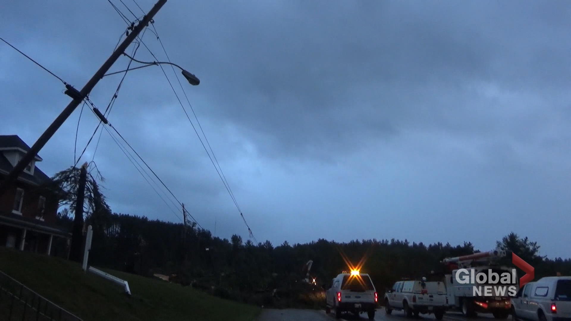 On Monday, Environment Canada told Global Peterborough there was no confirmation at the time that a tornado had touched down in the Kinmount area. However, the federal weather agency confirmed to Global on Tuesday that a tornado had in fact slammed the area.