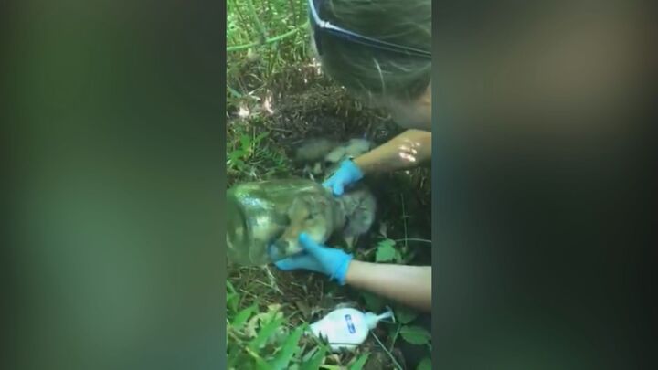 They were able to tranquilize the animal and were finally able to pull the jar off once the coyote was subdued.