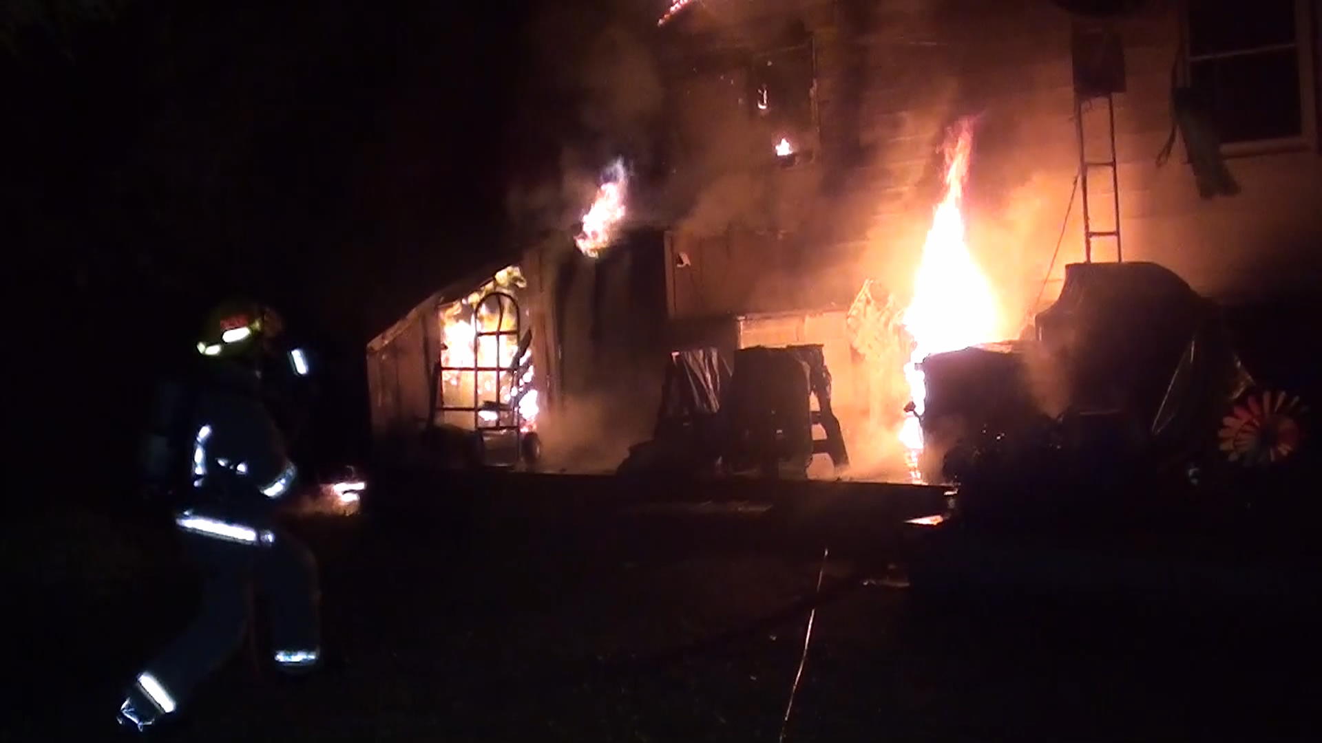 When the firefighters arrived, a shed was engulfed in flames at the rear of the residence, with the flames spreading to the home.