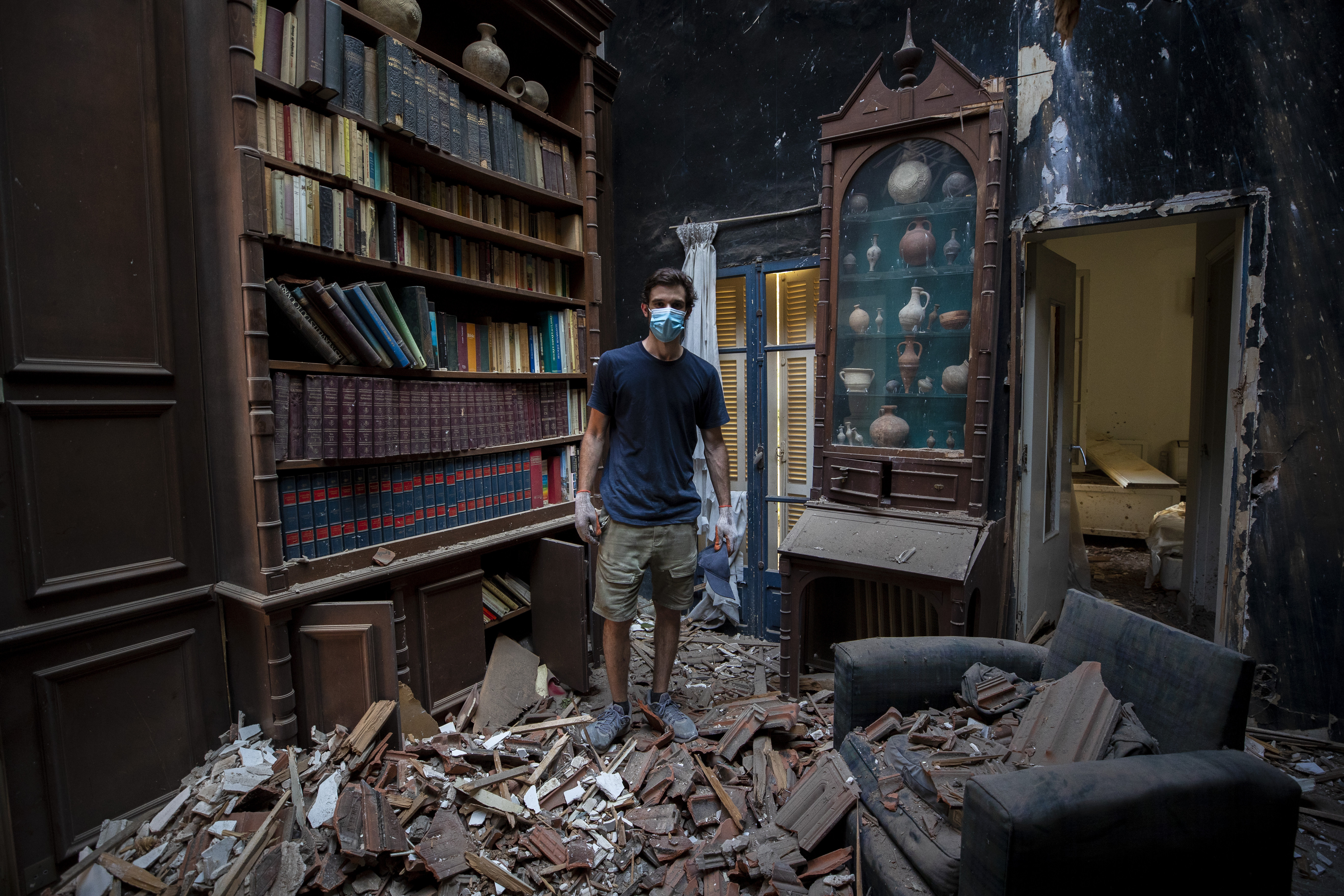 Said al-Assaad, 24, stands amid the destruction in his family home — a beautiful ground-floor traditional house in the historic district of Mar Mikhail facing the port.