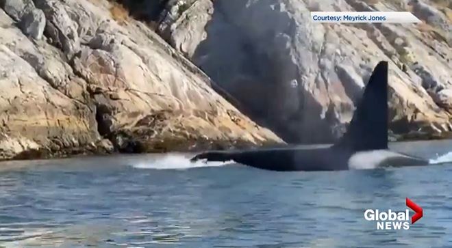Meyrick Jones said he was kayaking just after 9 a.m. Sunday when four orcas came swimming around them so he immediately pulled out his phone.