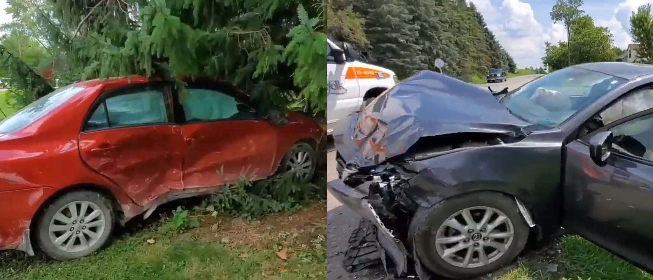 According to Norfolk County OPP, a vehicle heading southbound on Cockshutt Road and a vehicle heading westbound on Concession 8 collided at the intersection at around 11:30 a.m. Monday.