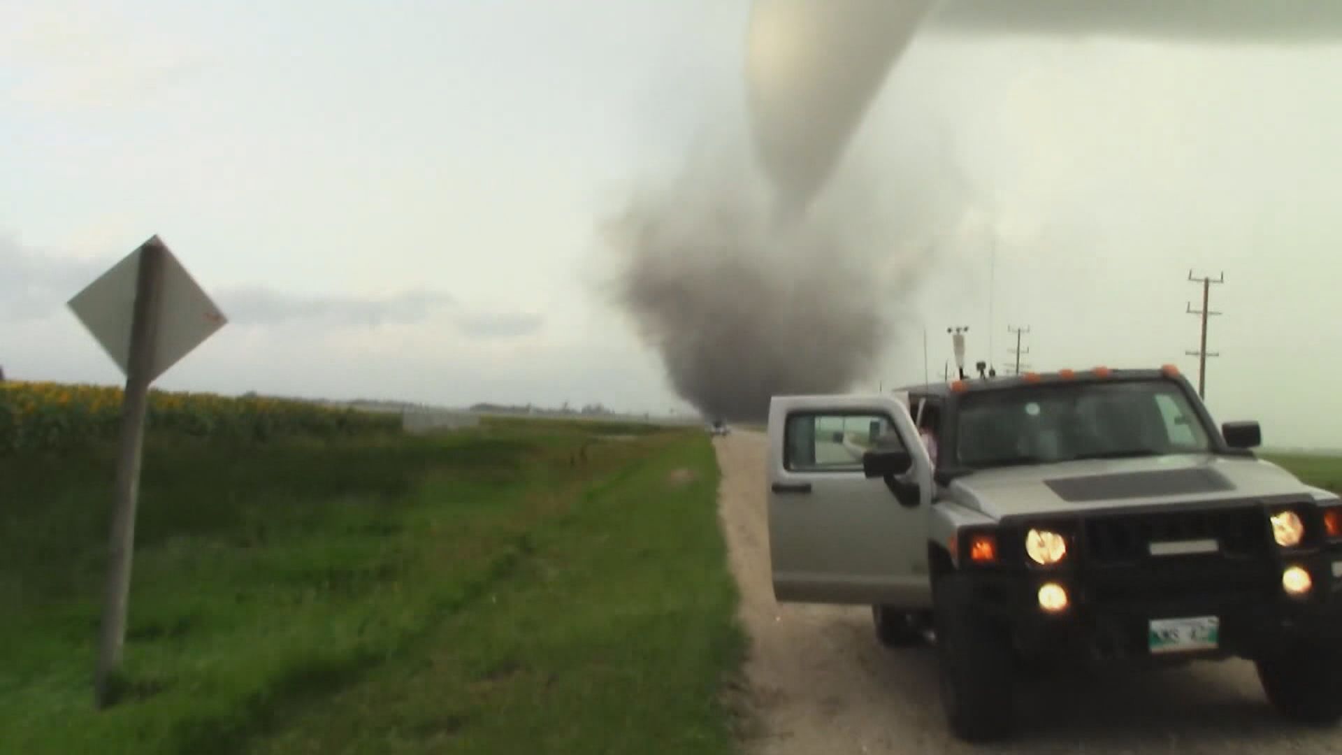 Rather than rushing in the opposite direction or looking for shelter, Jordan Carruthers with Manitoba Storm Chasers was broadcasting video of the developing tornado live through Facebook and relaying what he was seeing to Environment Canada.