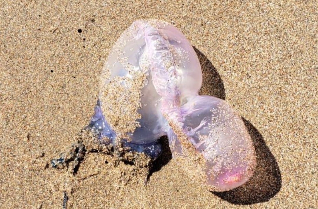 Several other people at the beach noticed the commotion and noticed the creature had washed up on the beach, she says. Someone had suggested it was a Portuguese man o’ war, she says.