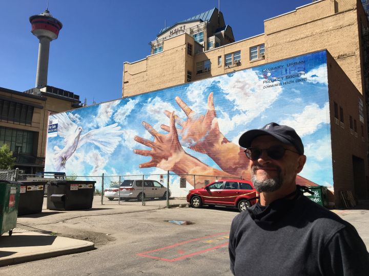 It’s proposed that the mural be created by painting over a mural called Giving Wings to the Dream, done by Calgary artist Doug Driediger in 1995.