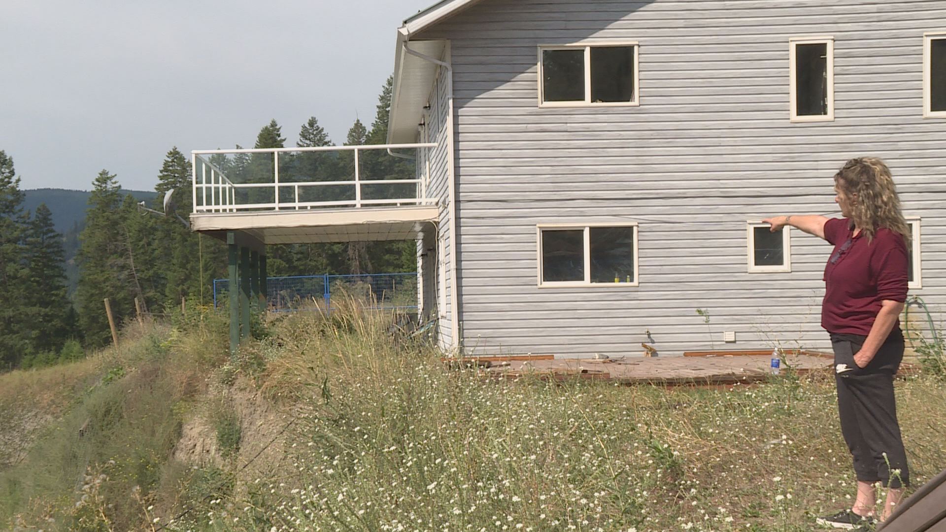 A North Okanagan woman is pushing for provincial help after a slow-moving landslide left her home on the edge of an embankment.