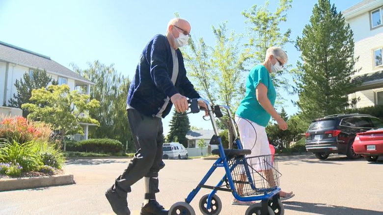Before being diagnosed with COVID-19, Sieh used to walk in and around Lawson Heights Mall for 10 to 15 kilometres every day. Now that he’s home, he’s struggling to walk up and down the hallway in his condo complex with a rolling walker.