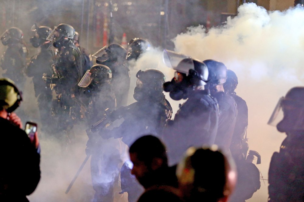 Demonstrations, often violent, have happened nightly in Oregon’s biggest city for more than two months following the killing of George Floyd. Floyd, a black man, died in Minneapolis after a white officer pressed a knee to his neck.