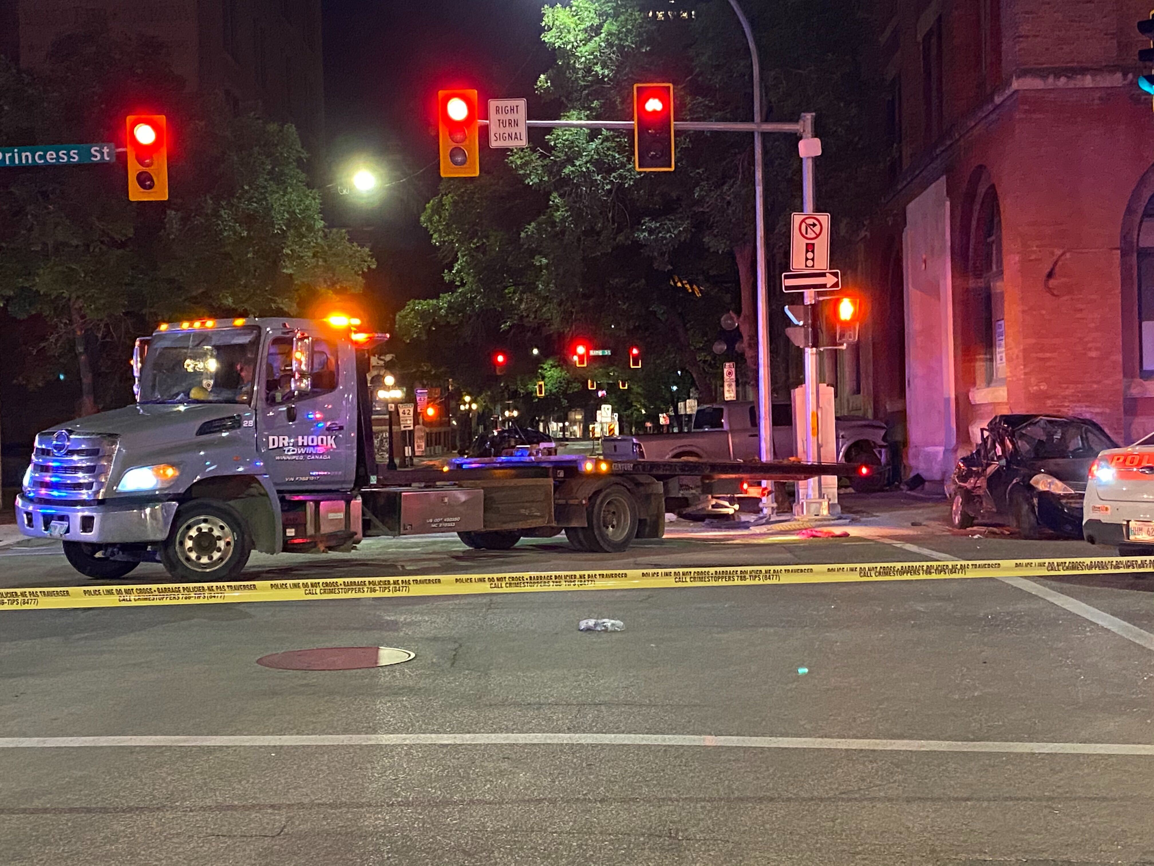 Winnipeg Police Service and the Winnipeg Fire Paramedic Service were called to a crash in the Exchange District late Saturday night.