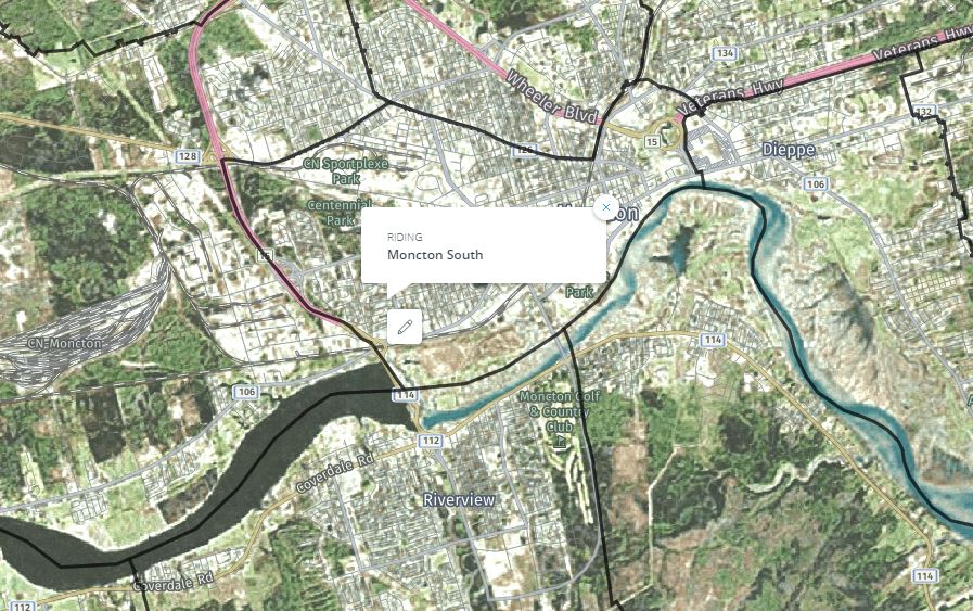 The entire riding is now inside the City of Moncton and includes downtown Moncton.