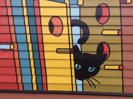 When you walk down Calgary’s alleys, on the walls of Beltline buildings you might see curious cats sneaking around a bird condo, island elements that make you feel like you’re on a beach or an accidental take on the Mona Lisa.