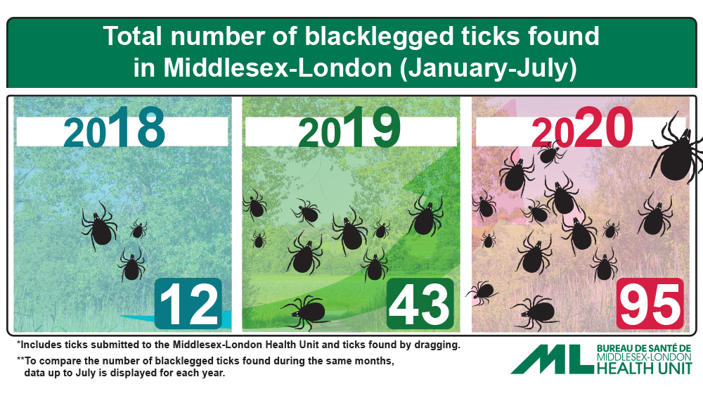 The Middlesex-London Health Unit says a massive yearly increase in the presence of blacklegged ticks resulted in a large portion of the region being added to the province’s Lyme disease risk area map.