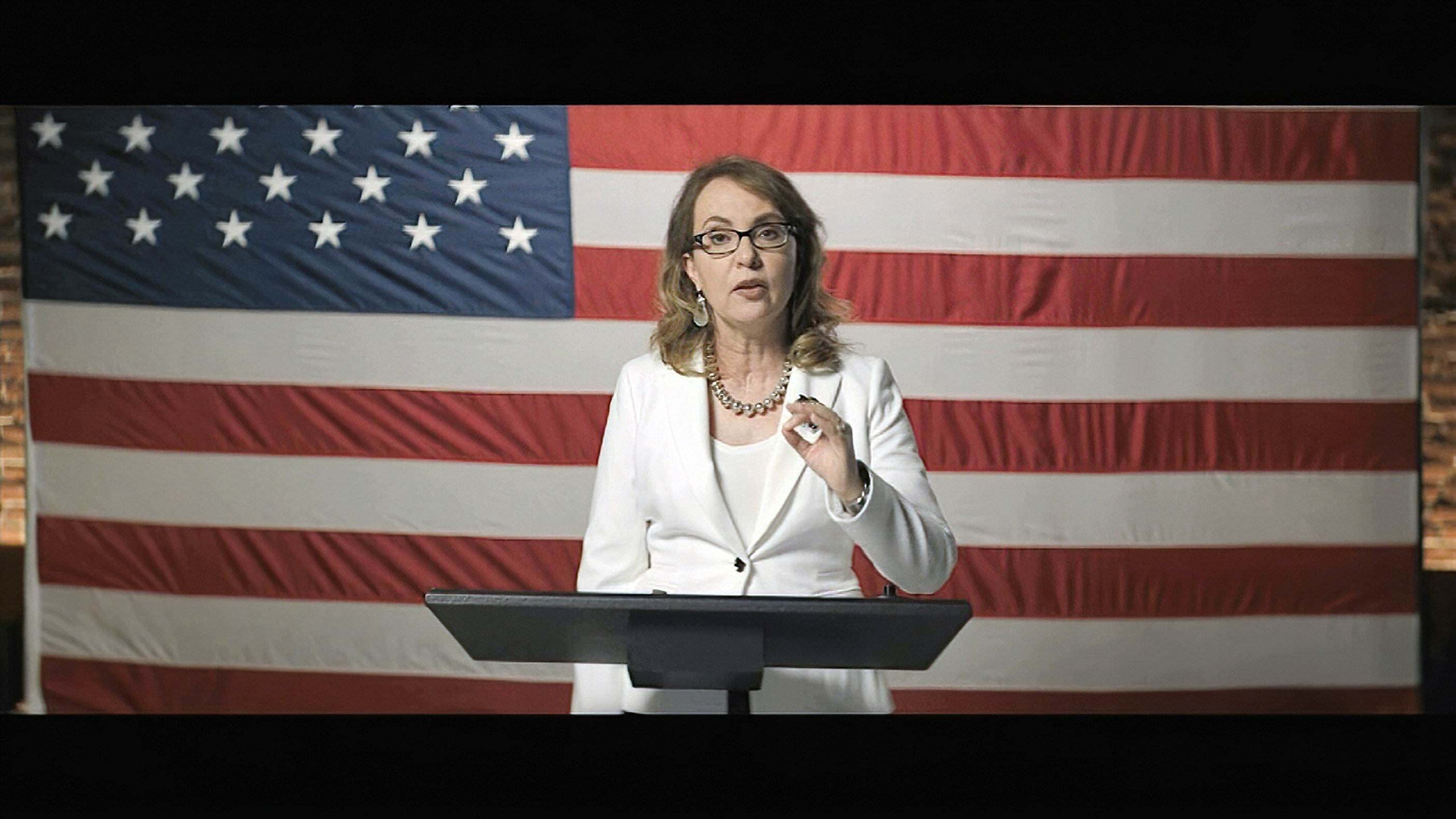 In a prerecorded video message during the virtual convention, Giffords stood in front of an American flag as she spoke about her recovery from the 2011 shooting, which left her with brain damage and nearly took away her mobility.